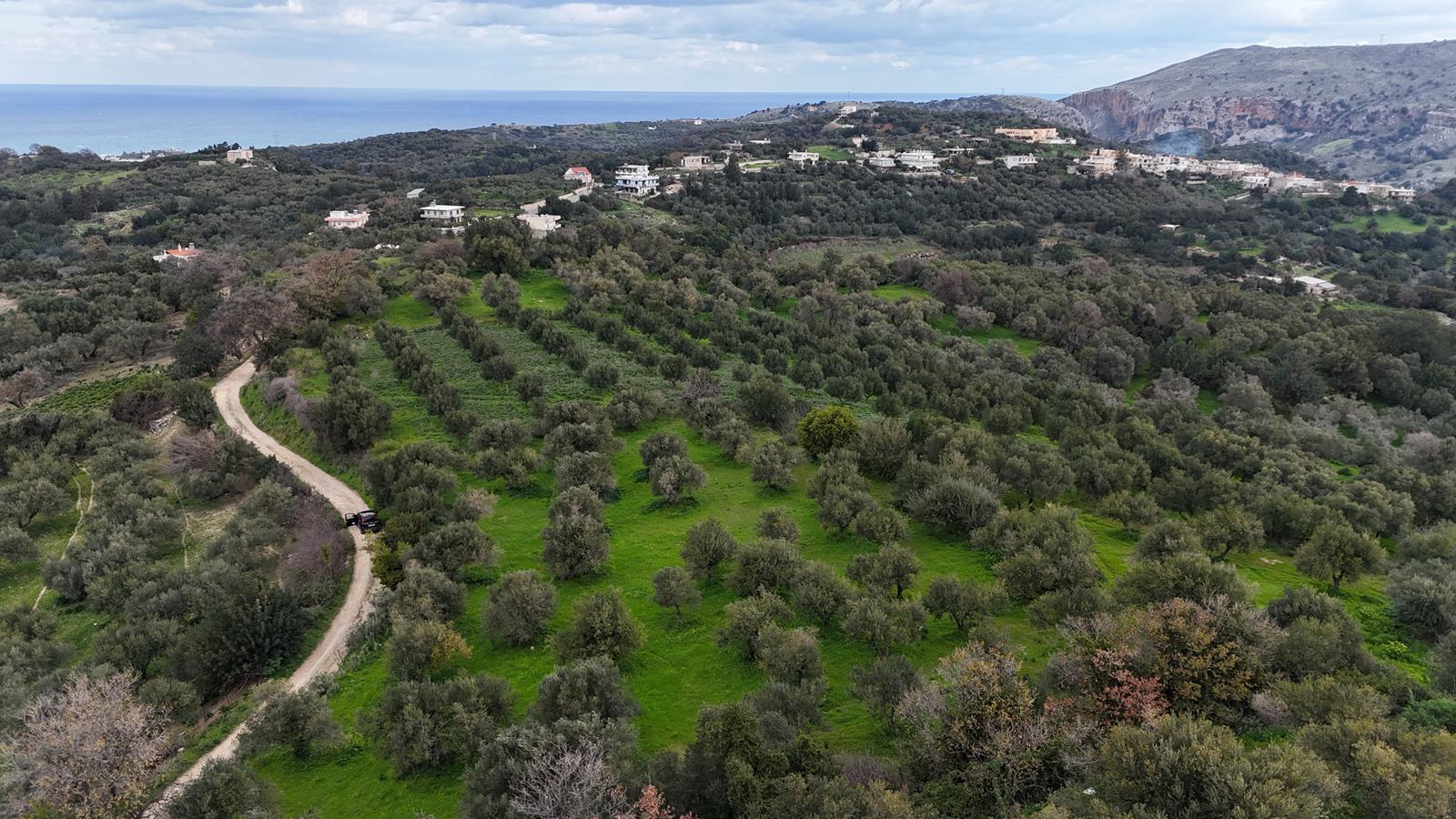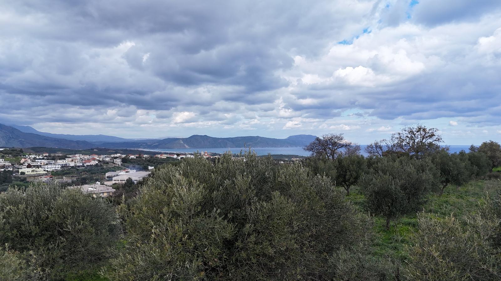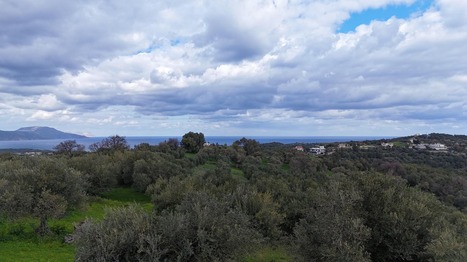 Μια υπέροχη ευκαιρία να αποκτήσετε ένα μεγάλο πανοραμικό οικόπεδο με θέα στη θάλασσα και παραγωγικές ελιές σε μια από τις πιο όμορφες τοποθεσίες της Κρήτης στην ύπαιθρο.