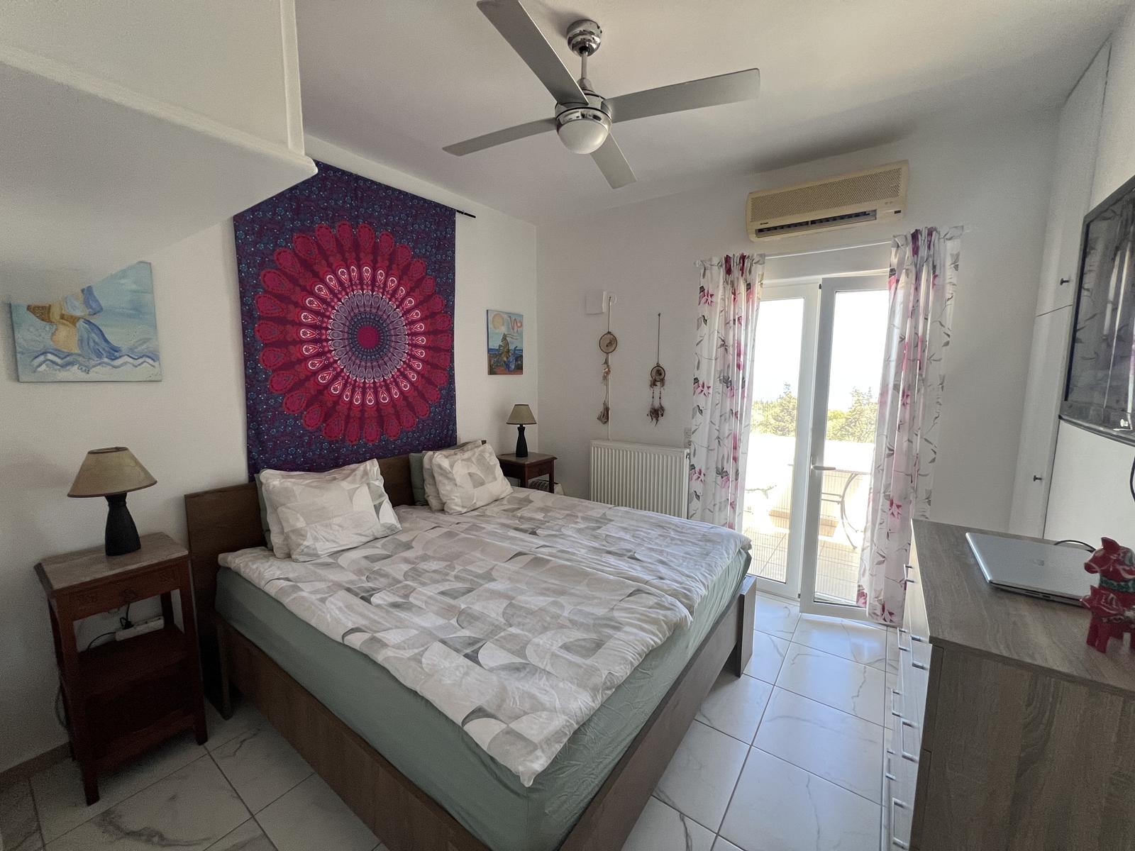 Η κύρια κρεβατοκάμαρα διαθέτει ιδιωτικό μπαλκόνι με υπέροχη θέα στη θάλασσα, προσφέροντας ένα ήσυχο σημείο για να απολαύσετε το γύρω τοπίο.