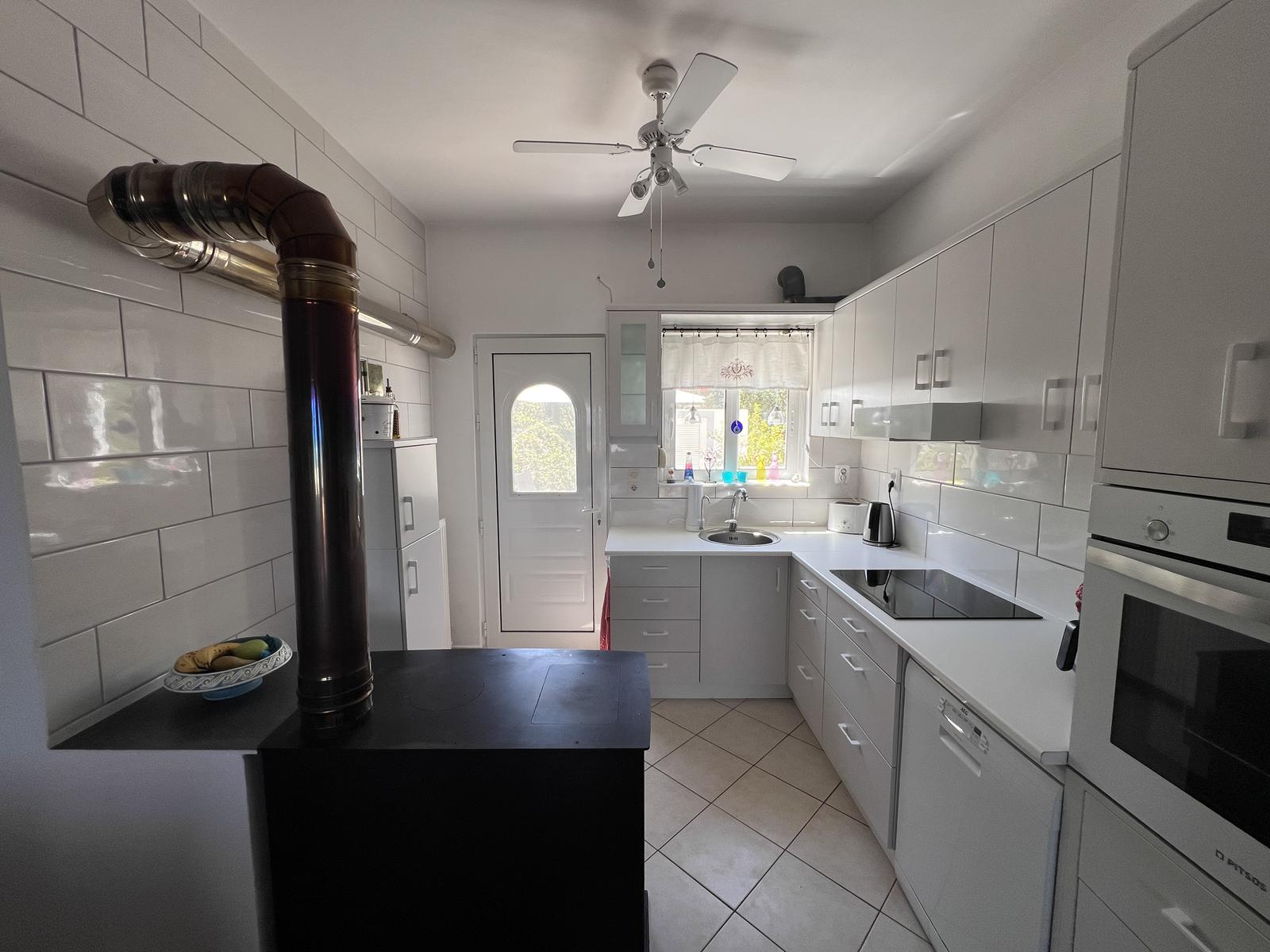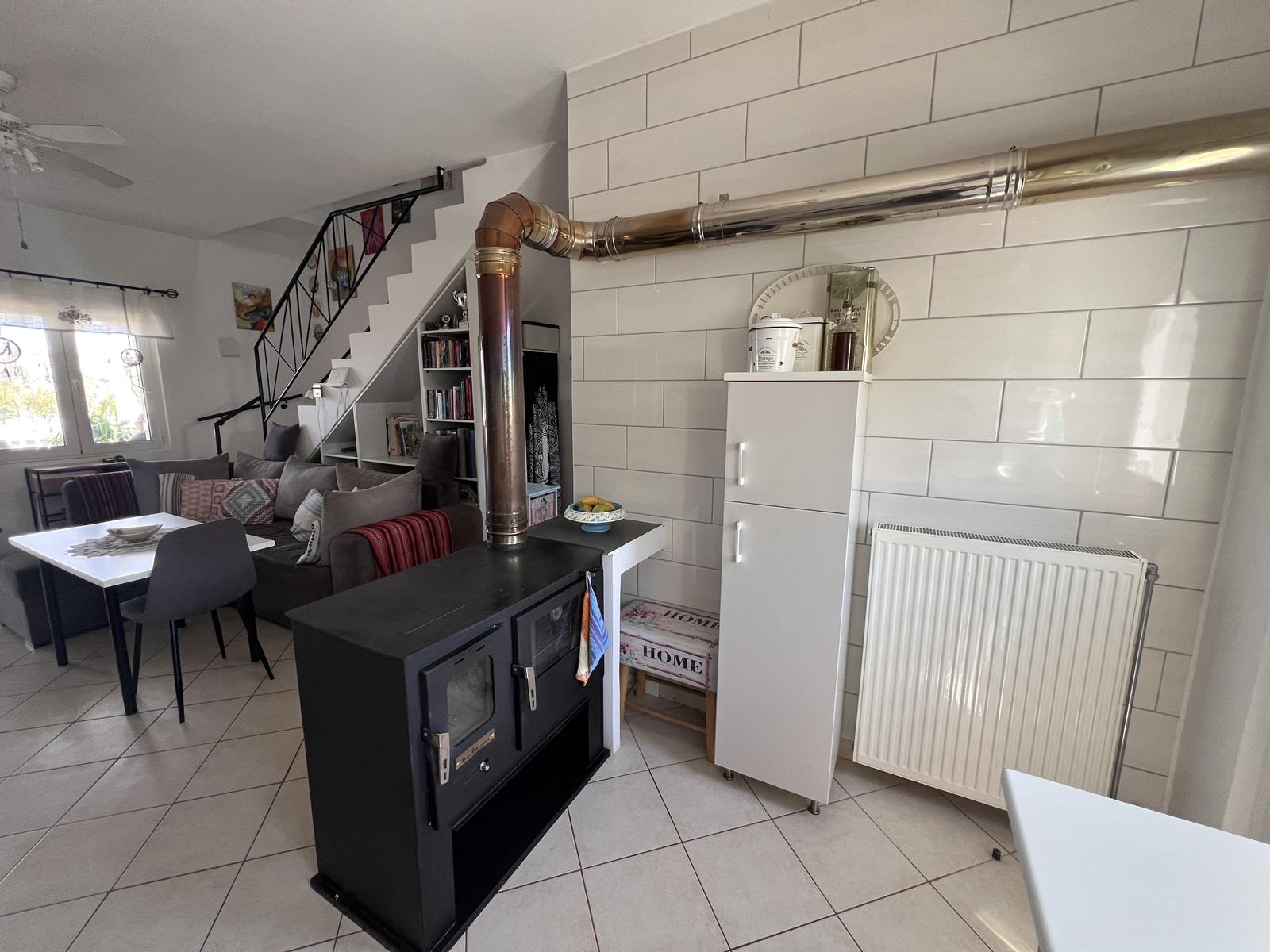 Το ισόγειο διαθέτει επίσης μια παραδοσιακή ξυλόσομπα, η οποία παρέχει θέρμανση για το σπίτι και μπορεί επίσης να χρησιμοποιηθεί για μαγείρεμα, δημιουργώντας μια ζεστή και αυθεντική ατμόσφαιρα κατά τους χειμερινούς μήνες.