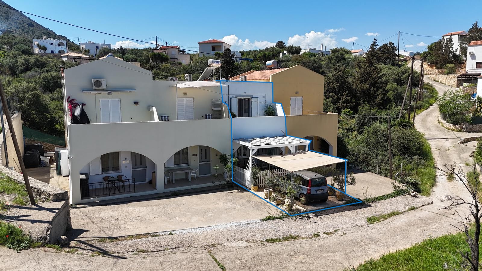 Οι εξωτερικοί χώροι του ακινήτου είναι ιδιαίτερα ελκυστικοί, με μια όμορφη ξύλινη πέργκολα στην κύρια είσοδο με ένα άνετο εξωτερικό καθιστικό, καθώς και έναν ιδιωτικό κήπο στην πίσω αυλή που προσφέρει ιδιωτικότητα και φυσική ομορφιά.
