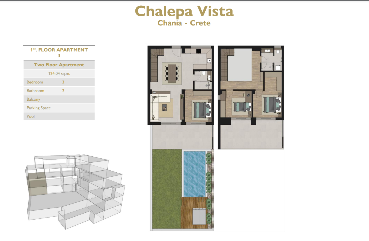 124,04 τ.μ. διώροφο διαμέρισμα με 3 υπνοδωμάτια, πισίνα, 1 θέση στάθμευσης & αποθήκη