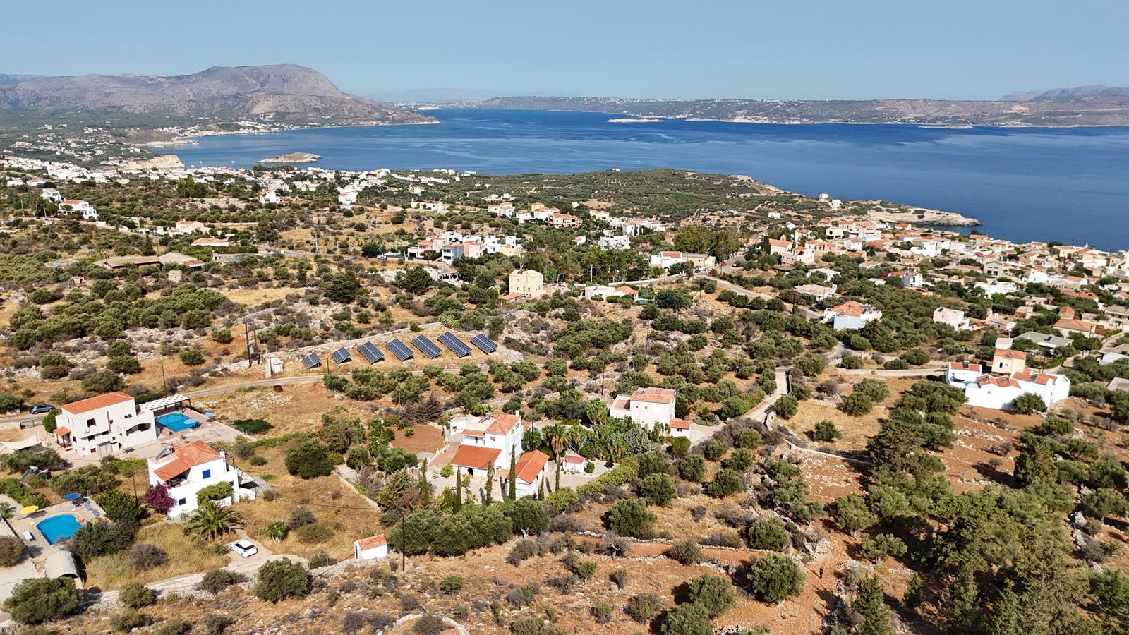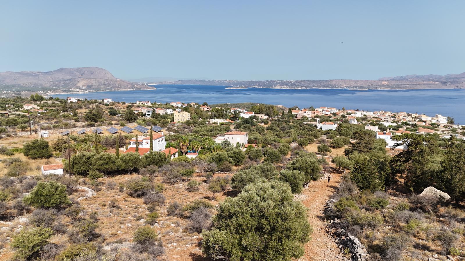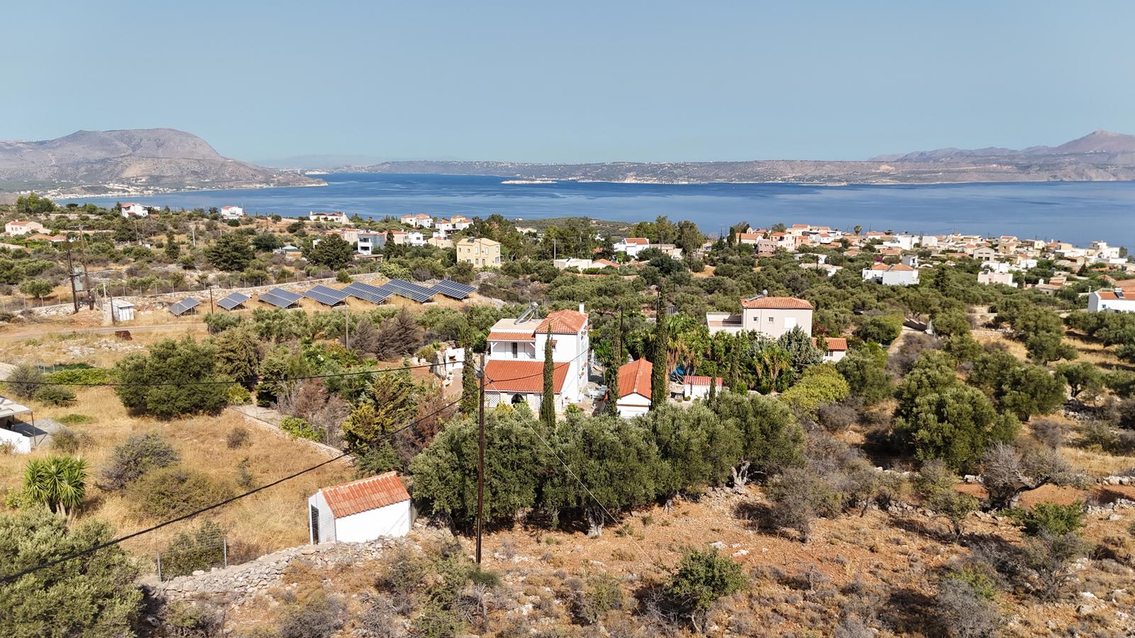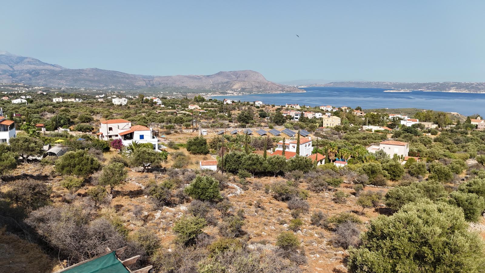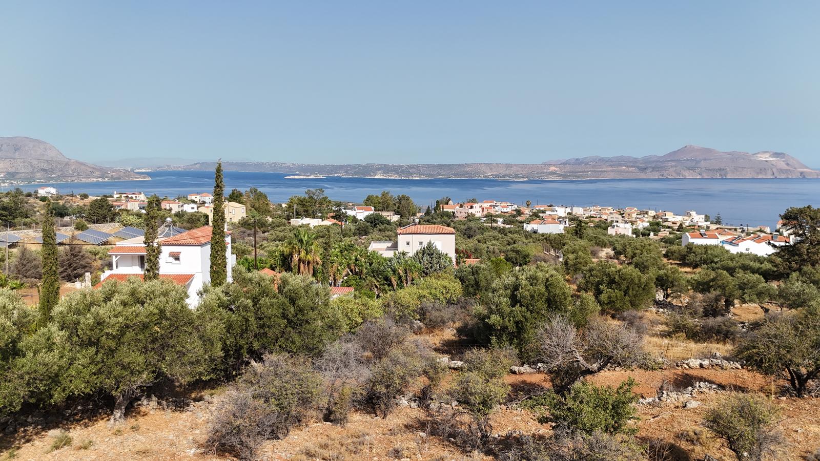 The plot enjoys open views towards the sea and the White Mountains, offering a serene environment while being close to village amenities.
