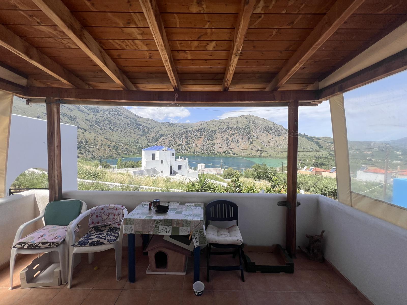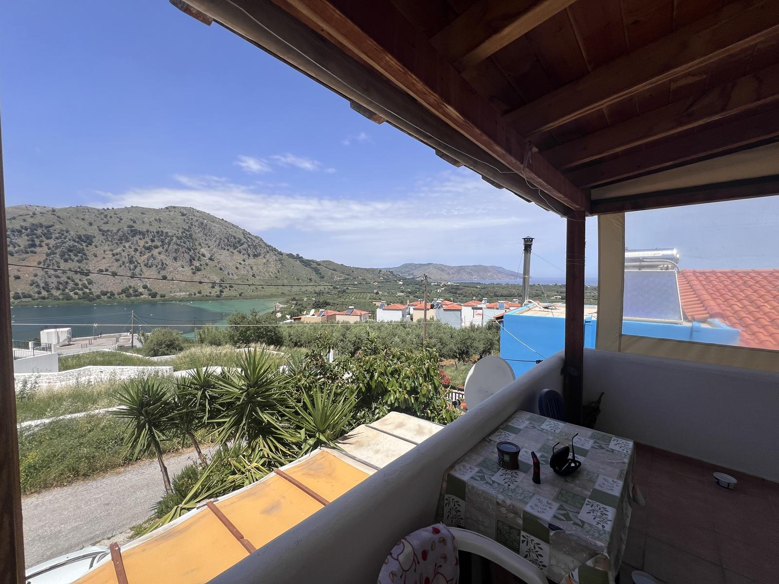 For sale a 75 m2 maisonette on a 122 m2 plot, offering stunning panoramic views of Lake Kournas and the sea.