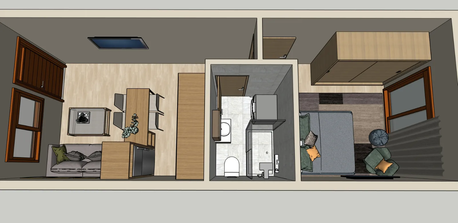 The layout is designed to maximize the use of space, offering a comfortable and efficient living environment.