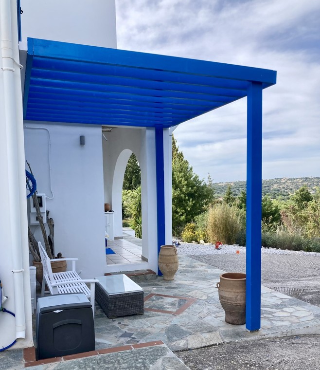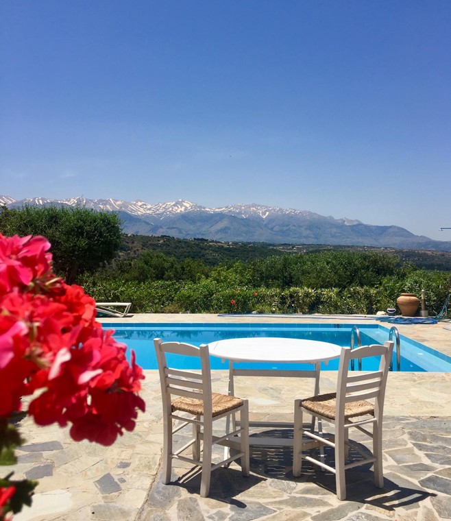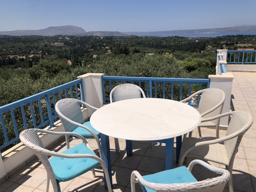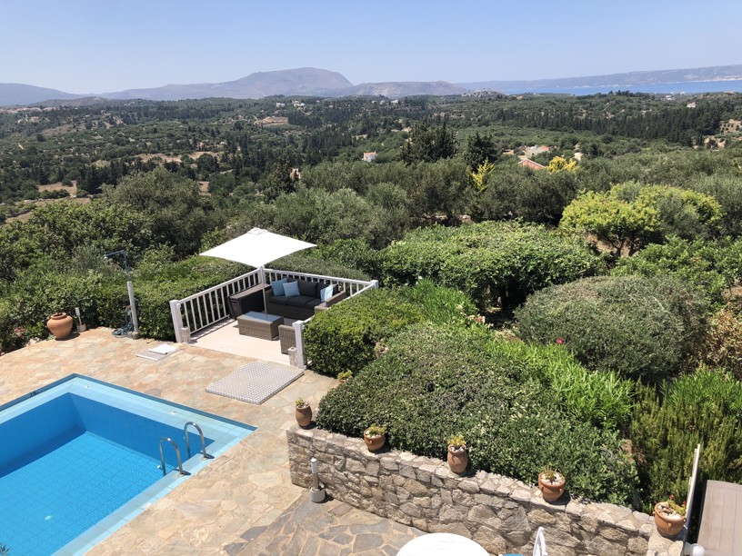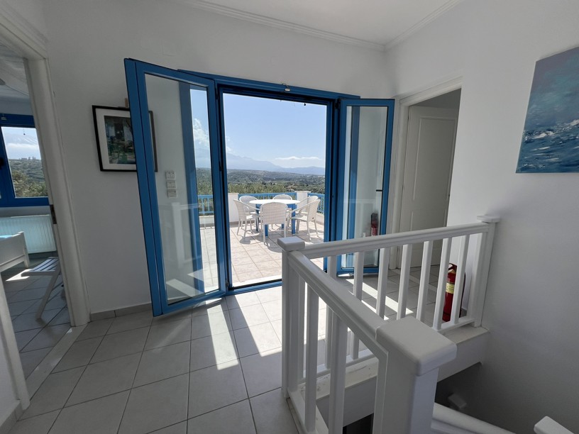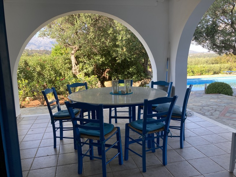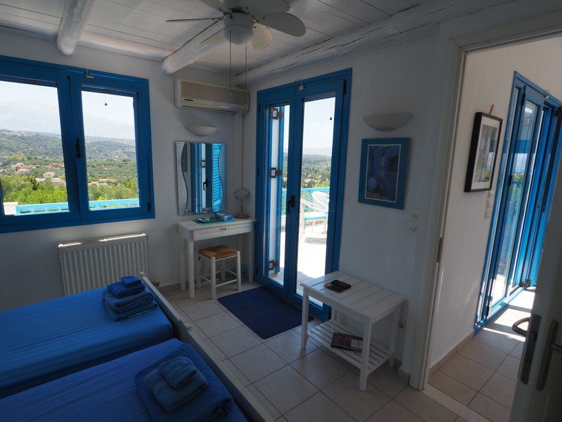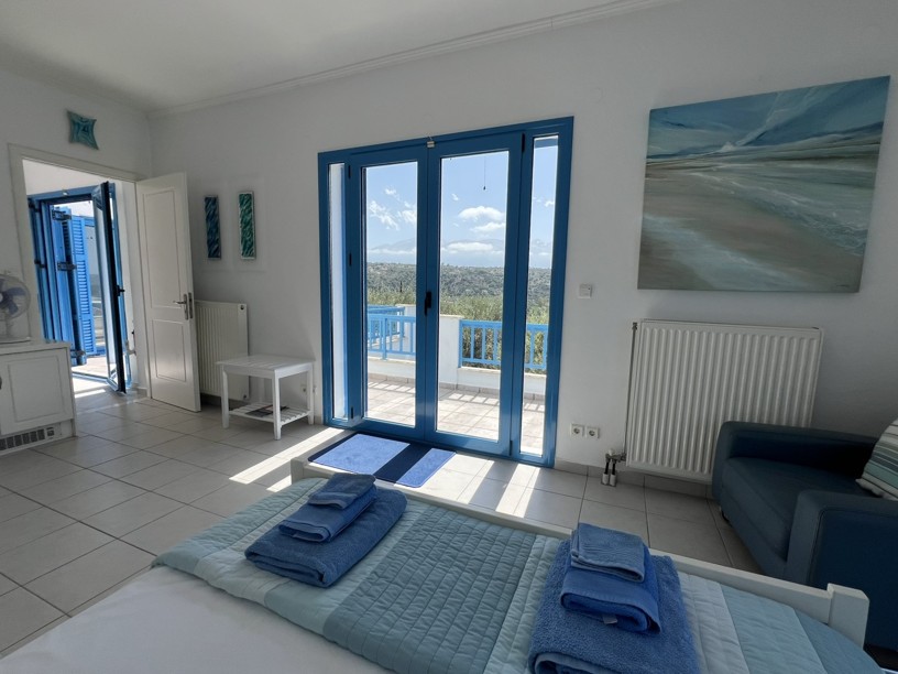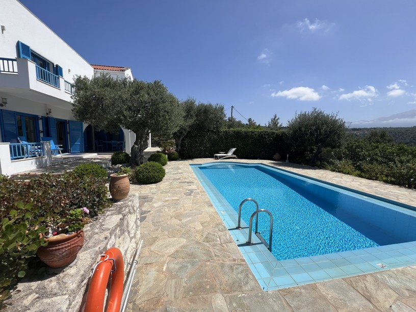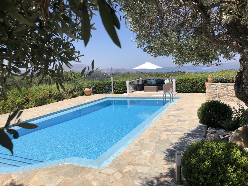 Exceptional 4 bedroom, 3 bathroom villa with pool, olive grove, protected panoramic sea and mountain views in a private location, walking distance to Gavalachori village. Decorated and furnished beautifully in traditional Cretan blue and white, this is literally the dream Greek villa you immediately picture when thinking about a home in Greece.