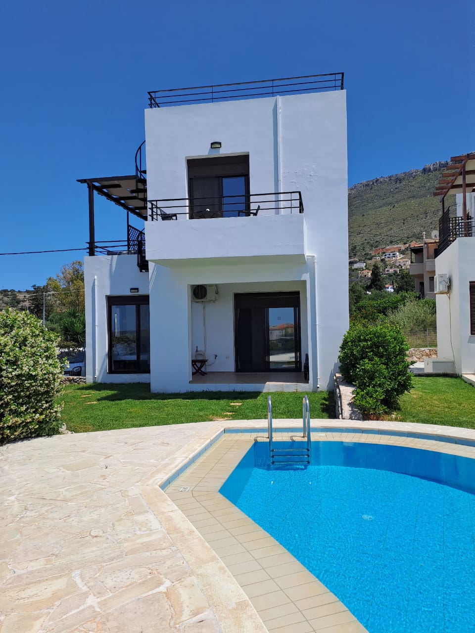 This is a 2 bedroom, 1 bathroom modern villa with 80sqm size, offering incredible sea views and shared pool. Located on the outskirts of the picturesque village of Kokkino Chorio, Villa Jasmine offers a serene and stylish holiday home or investment property.