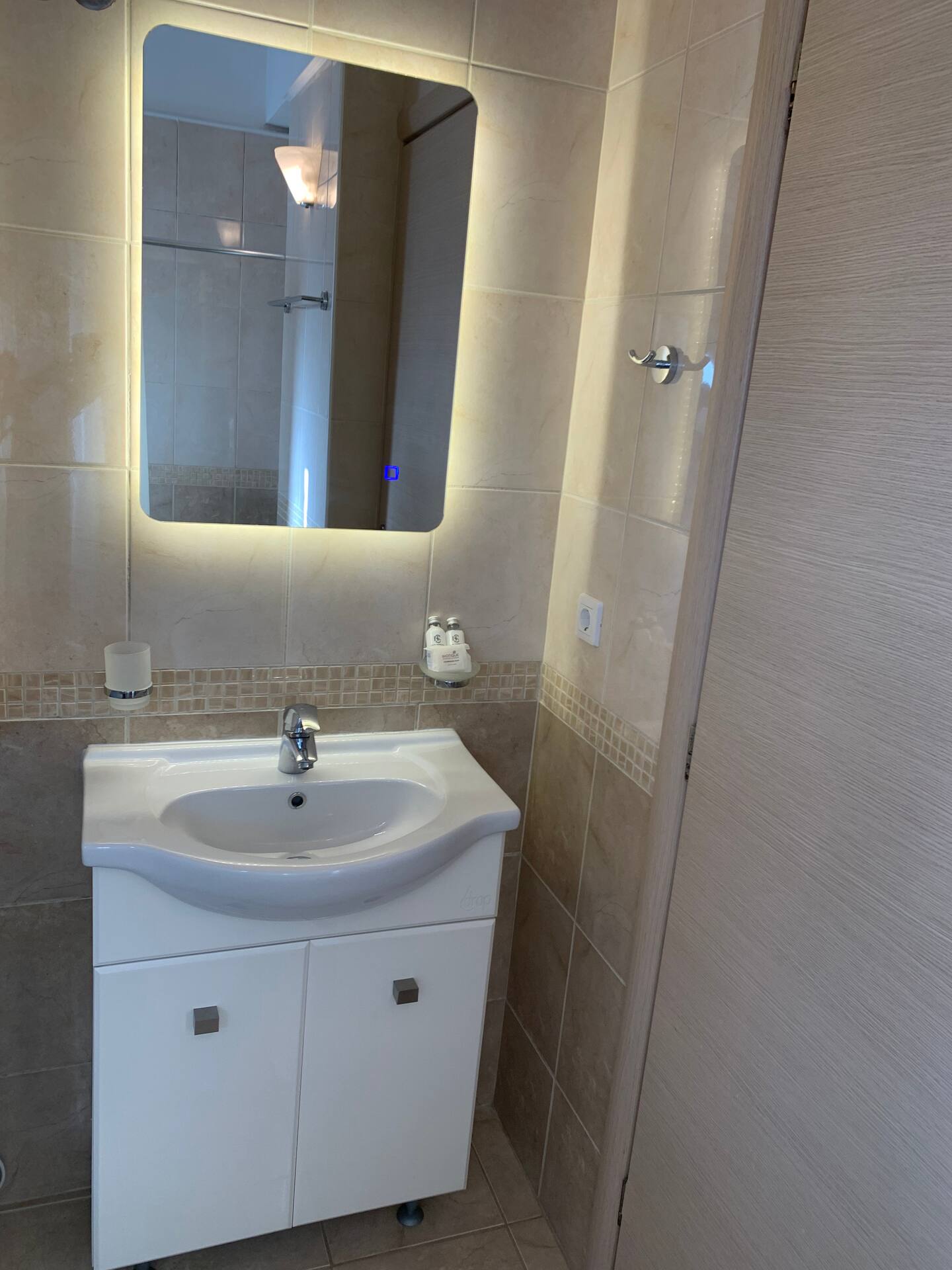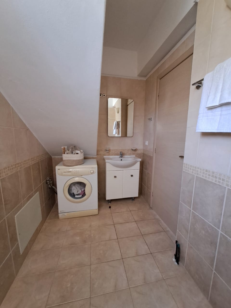 The large bathroom is opposite, with walk in shower and housing also the washing machine.