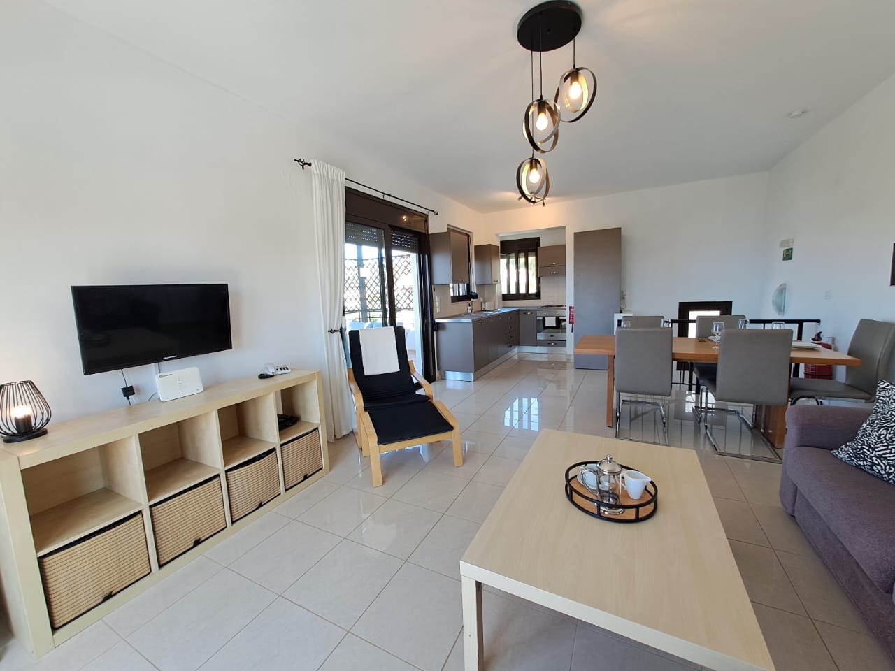 Ground Floor: designed as an upside down house, when you enter in the hallway you find the two spacious double bedrooms to your right. Both bedrooms have floor to ceiling fitted wardrobes and wide glass patio doors opening to the covered terrace and pool area.