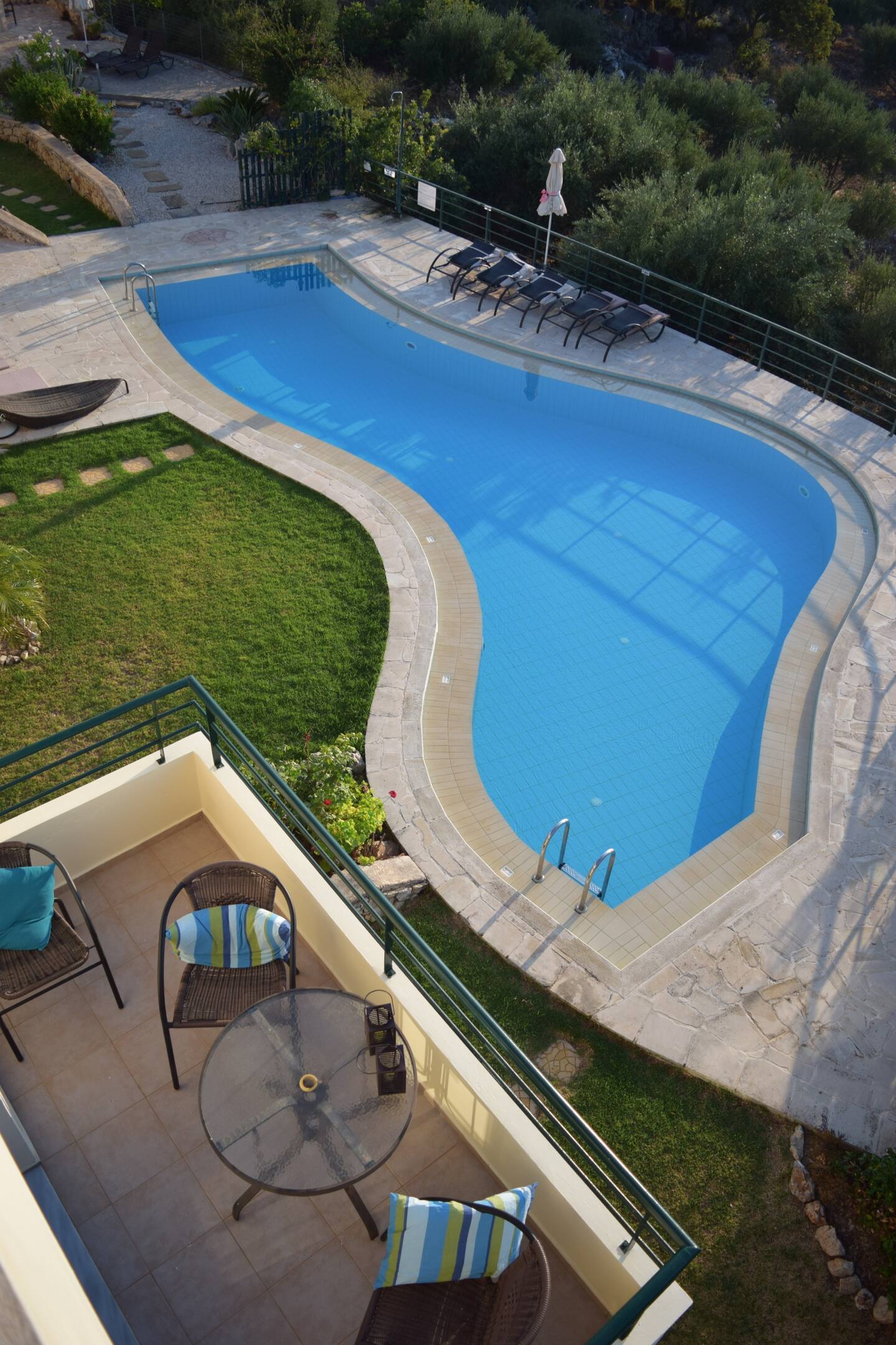 Outside: there is private off road parking and a small garden area (where you find the jasmine!) by the front door. From the bedrooms at the back of the villa is the covered sun terrace leading on to the large, well maintained communal pool and lawn. The two 1st floor balconies plus the roof terrace provide yet more private outdoor space.
