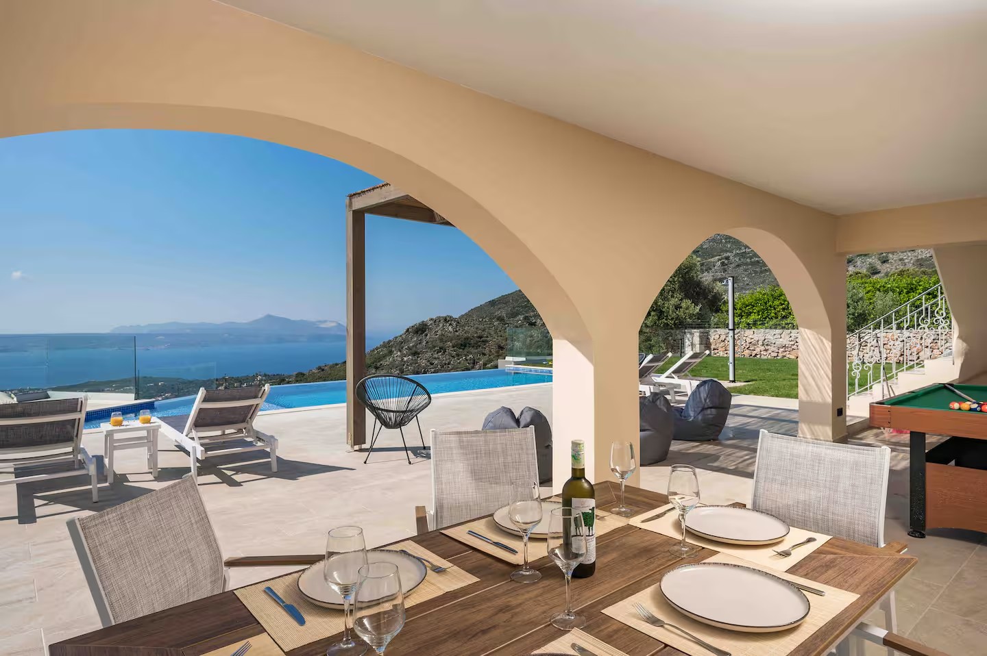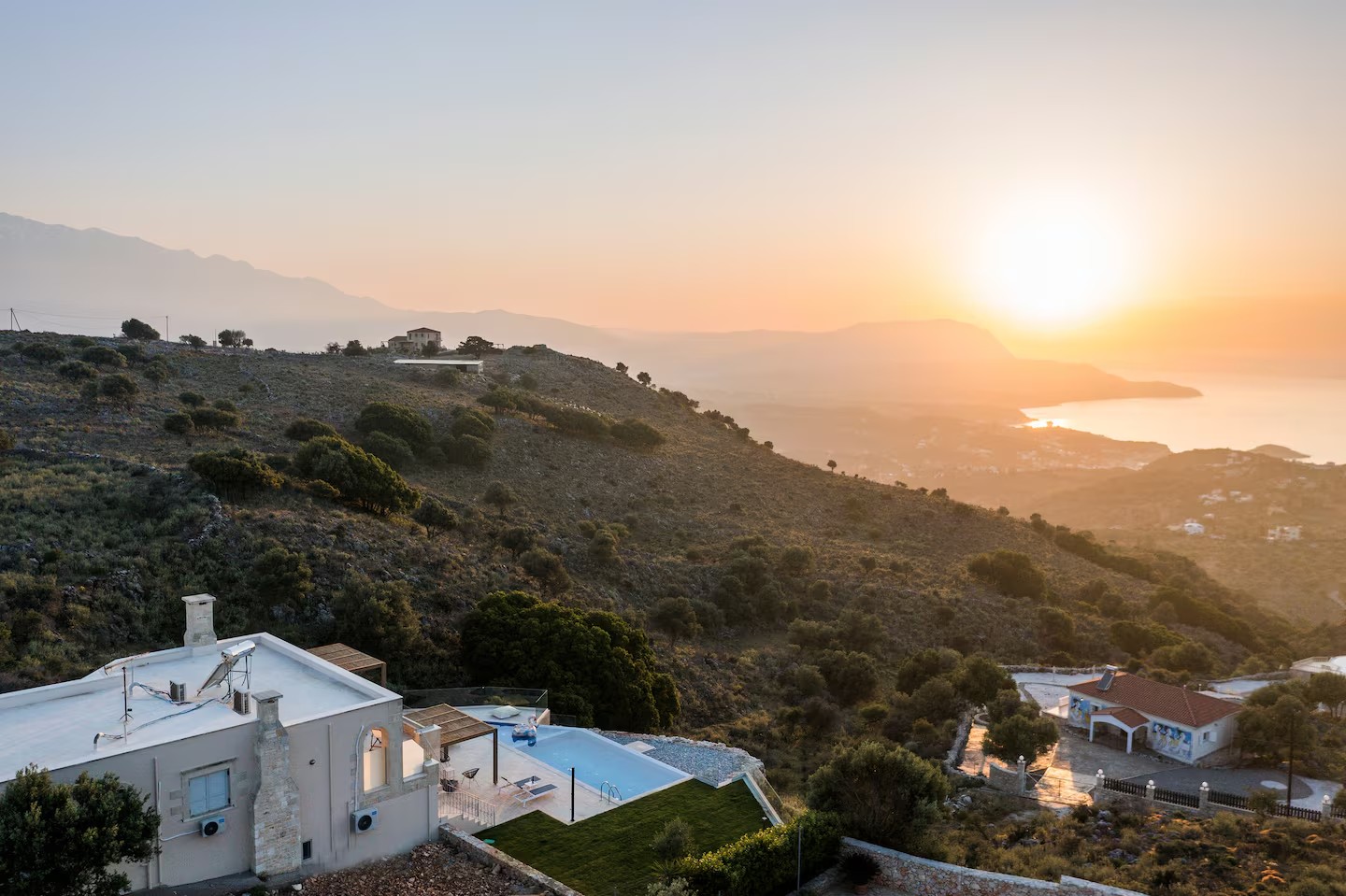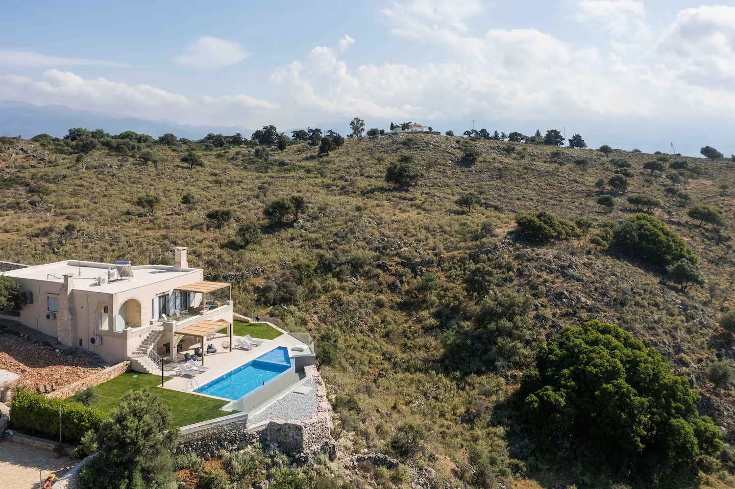To wyjątkowa, wolnostojąca kamienna willa Infinity o powierzchni 126,91 m², oferująca 3 sypialnie i 2 łazienki, z prywatnym basenem typu infinity oraz niezakłóconym, panoramicznym widokiem na Zatokę Souda.