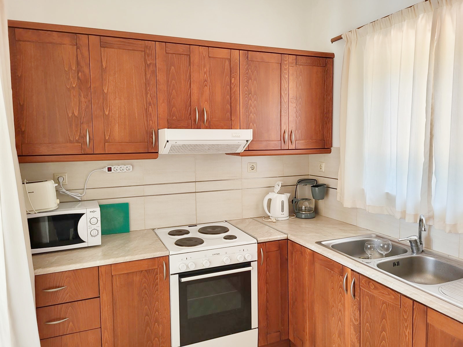 Kuchnia jest w pełni wyposażona – piekarnik, płyta grzewcza, lodówko-zamrażarka, mikrofalówka, zmywarka oraz pralka.